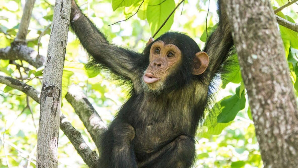 Unlike gorillas, chimpanzees are highly active and vocal. As you trek through the forest, you will often hear them before you see them.